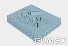 Materiál: technická pena iPlank LD, vrstvy 2× (50 + 30 + 15 + 15 + 15 mm), farba biela