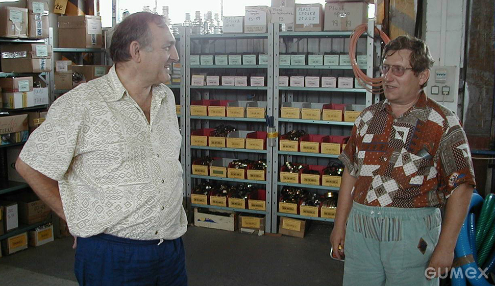 Neměli jsme žádné konkrétní plány, jen touhu dokázat, že se podnikáním uživíme. Na první obchodní cestě jsem sjednal výhodnější podmínky u důležitého výrobce hadic a pryží Optimit Odry. Neznámému GUMEXU ze Strážnice velká výrobní firma zpočátku vůbec nevěřila, že se na trhu uchytí a stane se dobrým obchodním partnerem. I přesto jsme představili naše smělé plány možných odběrů. Moc nám pomohla důvěra tehdejší obchodní referentky (dnes pracovnice zákaznického servisu) paní Orságové, se kterou i po tolika letech stále spolupracujeme…